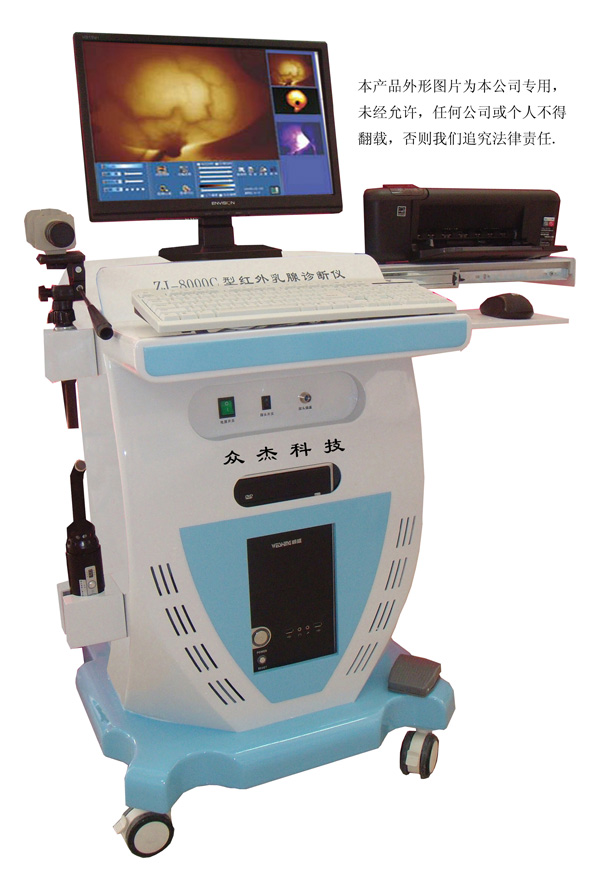 紅外乳腺診斷儀是由推車、主機(jī)、顯示器、探頭、攝像頭和打印機(jī)等部件組成主要應(yīng)用于人體乳腺組織的紅外透照檢查。儀器軟件在Windows中文操作系統(tǒng)下可實(shí)現(xiàn)圖像采集、顯示、處理、儲(chǔ)存和打印輸出的一體化管理,支持病員的資料編寫,生成的圖文報(bào)告單格式有助于醫(yī)生借助圖像向病人說明檢查部位受損程度以及治療方法。